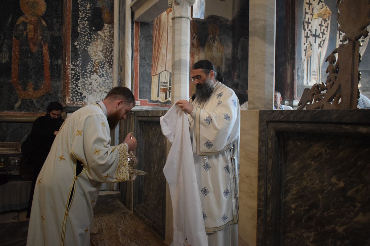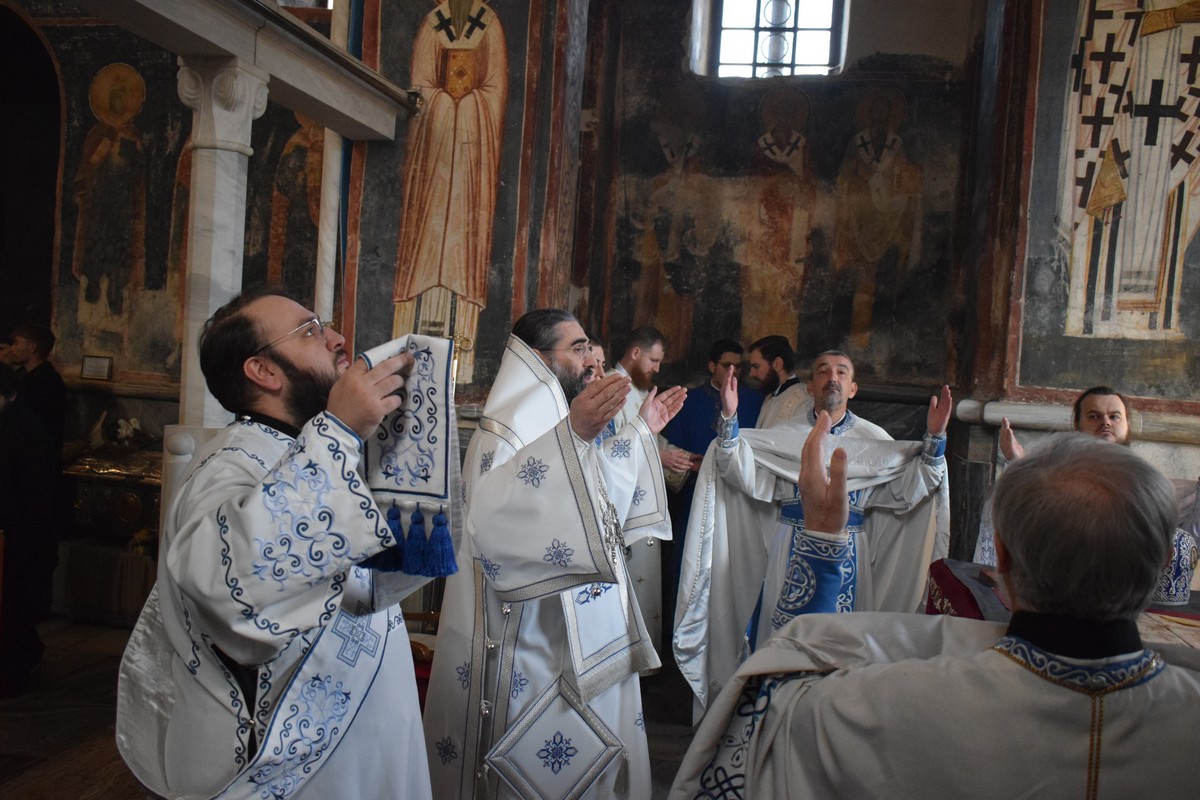 Високопреосвећеном Митрополиту саслуживали су протојереј ставрофор Љубинко Костић, Архијерејски заменик, протојереј Данило Петровић, Архијерејски намесник студенички, протосинђел Стефан Чкоњевић, настојатељ манастира Згодачица, јеромонах Пантелејмон Мијаиловић, јеромонах Пантелејмон Дивљаковић, јеромонах Сергије Радивојевић, клирик крушевачке Епархије, јеромонах Паладије Вукшић, сабрат манастира Студеница, јереј Велимир Бугарин из Митрополије црногорско-приморске, протођакон Ђорђе Филиповић и ђакон Стефан Симић.