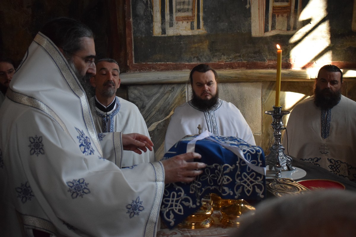 Након заамвоне молитве, Високопреосвећени Владика је осветио славске дарове и пререзао колач, припремљен поводом ктиторске славе ове Богородичине светиње, која вековима стоји као темељ духовног напретка нашег народа и путоказ ка најсветлијим примерима српске повести.