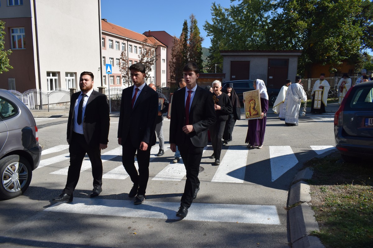 По заамвоној молитви, централним улицама Димитровграда прошла је свечана литија, која је окончана повратком у храмовну порту. Следило је освећење славских дарова и резање колача, припремљеног поводом храмовне славе.