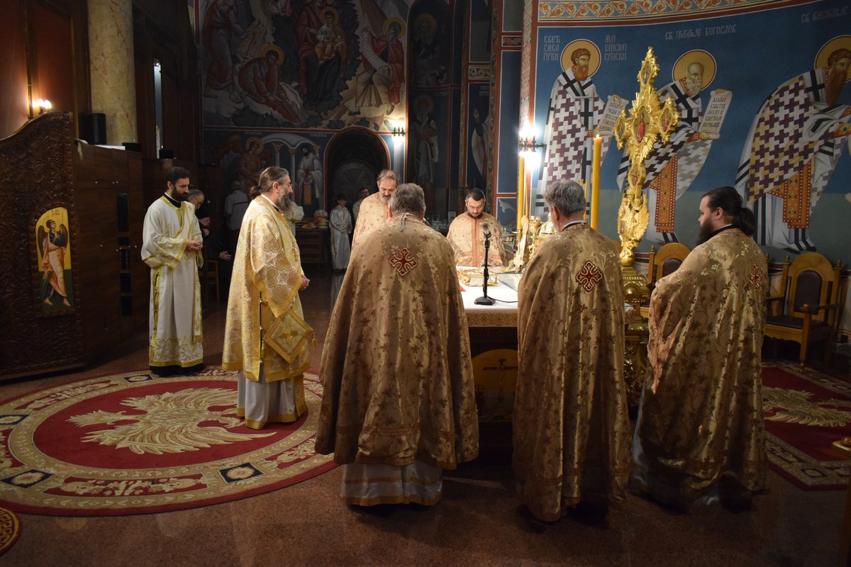 Високопреосвећеном Митрополиту саслуживали су протојереј-ставрофор Бранислав Цинцаревић, старешина храма, протојереј-ставрофор Ненад Микић, парох први, протојереј Миодраг Павловић, Архијерејски намесник први нишки, протојереј Владица Савић, парох пети, јеромонах Пантелејмон Мијаиловић, протођакон Ђорђе Филиповић и протођакон Стеван Кричка.