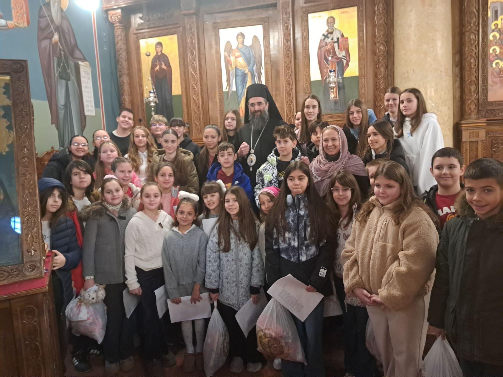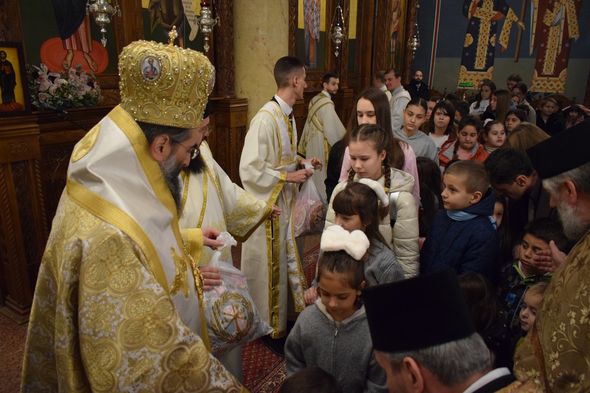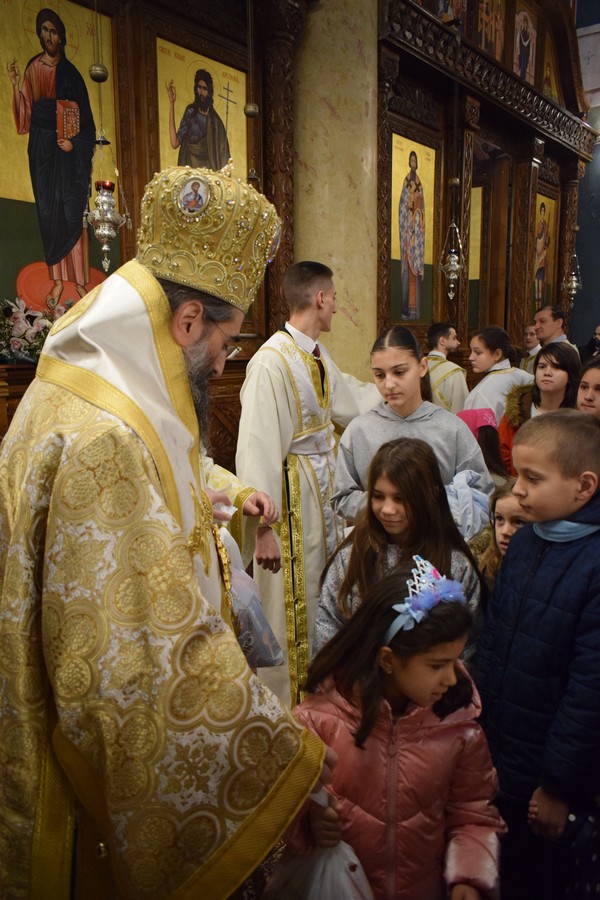 На крају Свете Литургије, најмлађима су подељени празнични пакетићи, слатки поклон уочи предстојећих празничних дана.