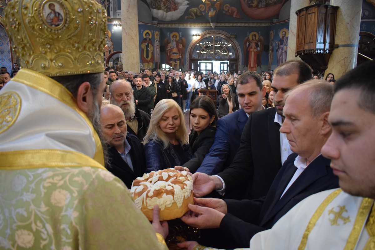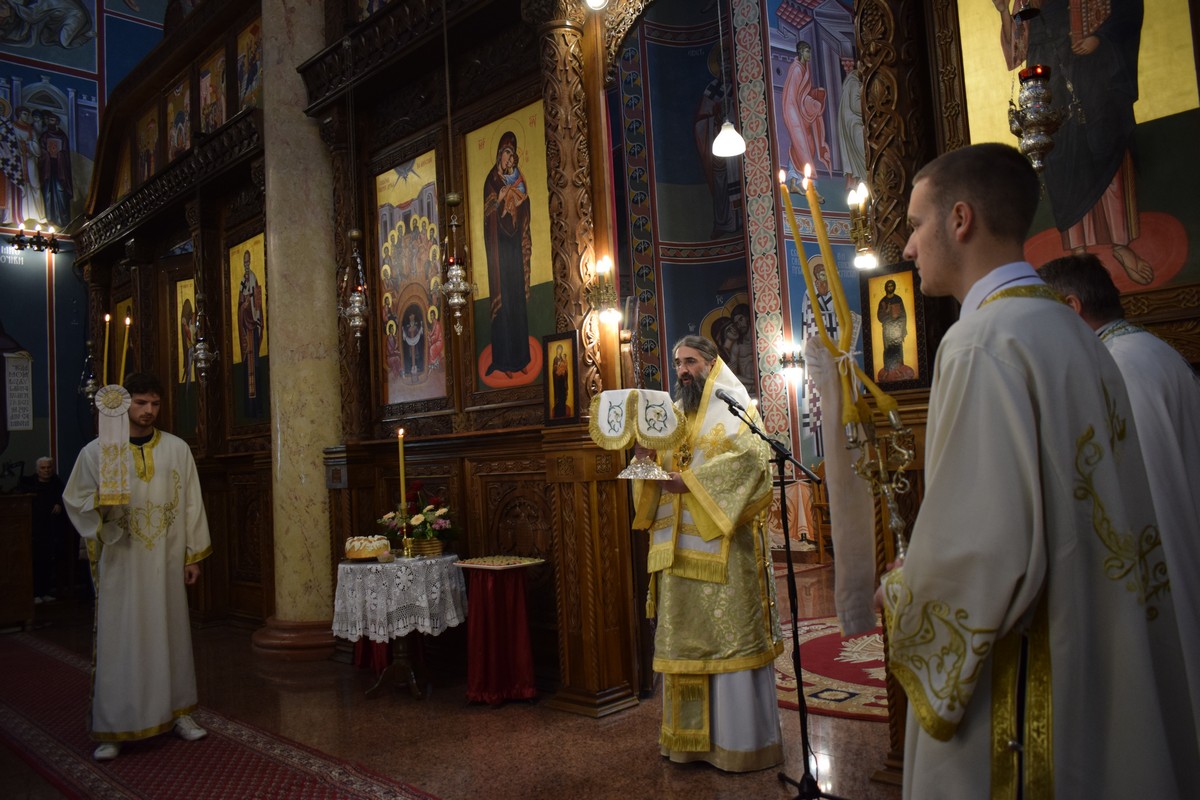 Након заамвоне молитве, освећени су славски дарови и пререзан колач, поводом славе Удружења нишких хаџија.