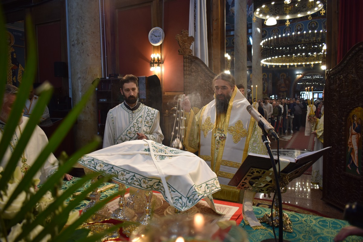 У недељу Цветну, 5. априла 2026. године, на дан празника Уласка Господа и Спаса Исуса Христа у Јерусалим, Његово Високопреосвештенство Митрополит нишки г. Арсеније началствовао је свештеним евхаристијским сабрањем у Саборном храму Силаска Светога Духа на Апостоле у Нишу.